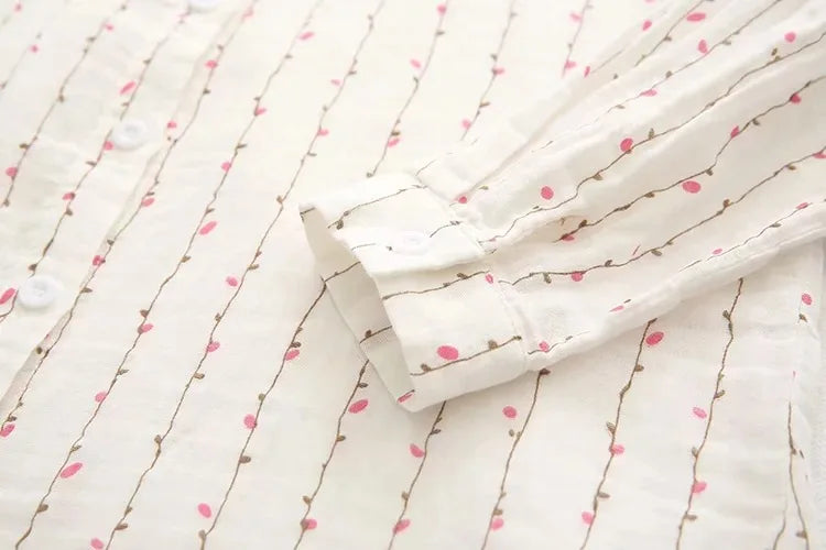 A camisa Kalya é feita em algodão leve, com manga longa e estampa floral delicada e encantadora, sendo a escolha certa para um visual casual com toque romântico.