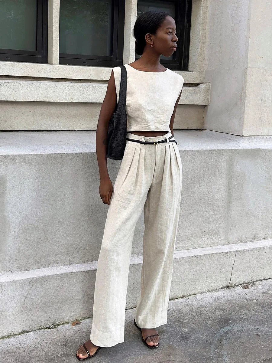 O Conjunto Adelaide é composto por calça comprida de caimento elegante e colete moderno, criando um visual versátil que transita facilmente do casual chic ao sofisticado. Sua composição especial de algodão, linho, poliéster e viscose garante leveza, respirabilidade e um toque macio, perfeito para acompanhar sua rotina com estilo.