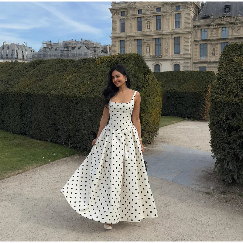 O vestido Napoli é um clássico longo de bolinhas delicadas, leve e irresistivelmente feminino. De estilo romântico e casual é ideal para passeios elegantes ou momentos especiais.